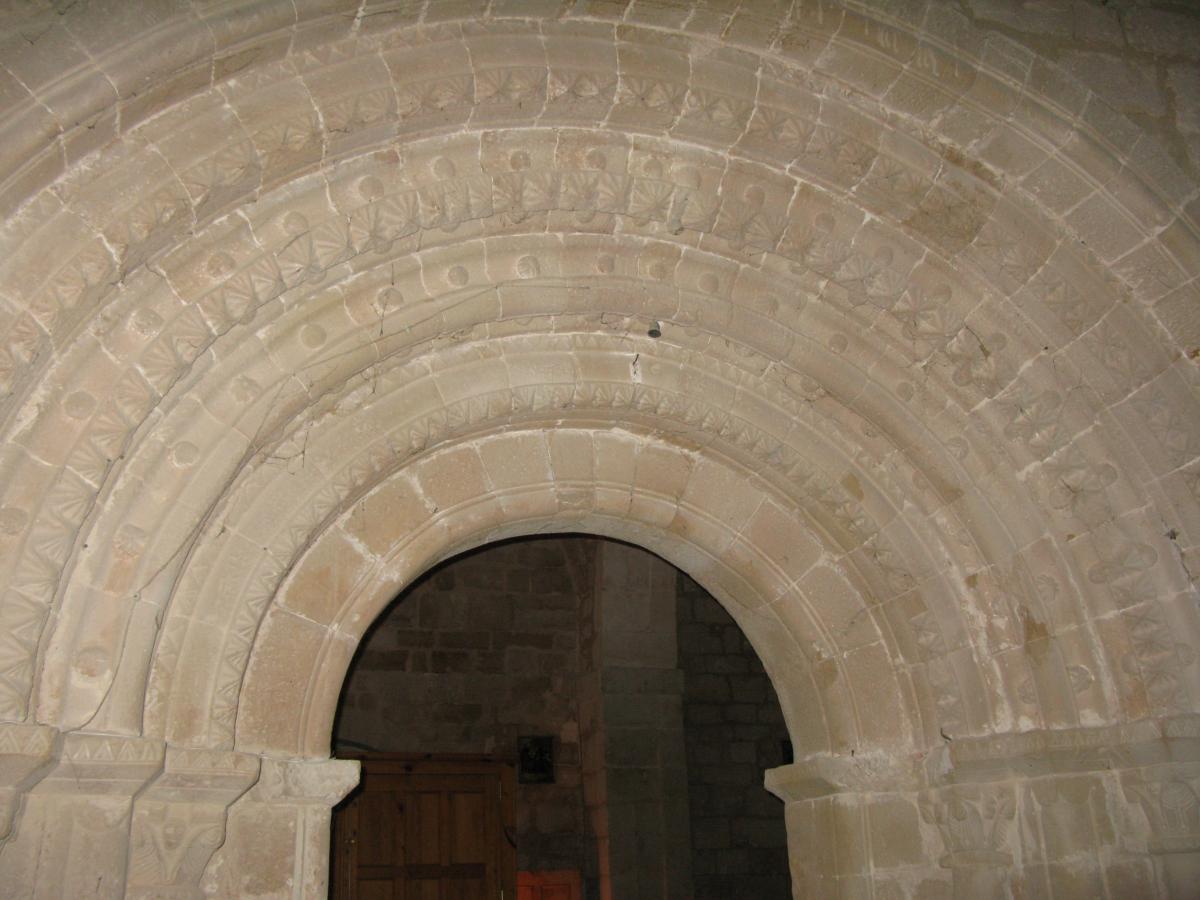 Este pórtico y esta portada no se corresponden en el tiempo ni estilo, sus capiteles también difieren, siendo los de la portada parecidos a los de Valdazo y los del pórtico a los de Soto de Bureba, estos últimos con mayor maestría en la labra.